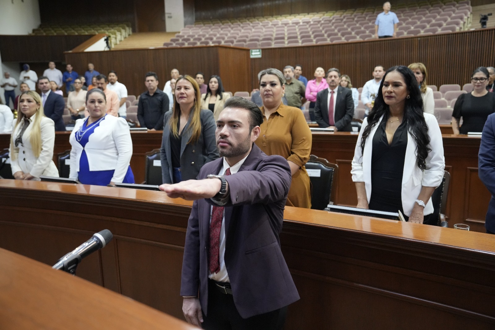 Las diputadas y diputados permanecieron de pie durante la toma de protesta, luego de lo cual la presidenta de la Mesa Directiva invitó al nuevo integrante a ocupar su correspondiente asiento en el Salón de Sesiones.