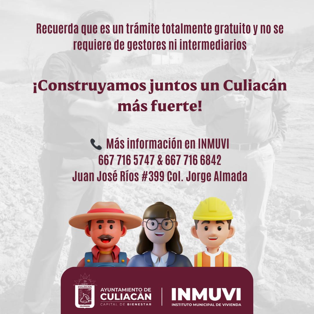Culiacán, Sin., a 06 de enero de 2025.- El Instituto Municipal de Vivienda (INMUVI), abre convocatoria a partir de este 6 de enero y hasta el 28 de febrero al Programa Municipal de Vivienda 2025, con el que se busca abatir el rezago en la materia.