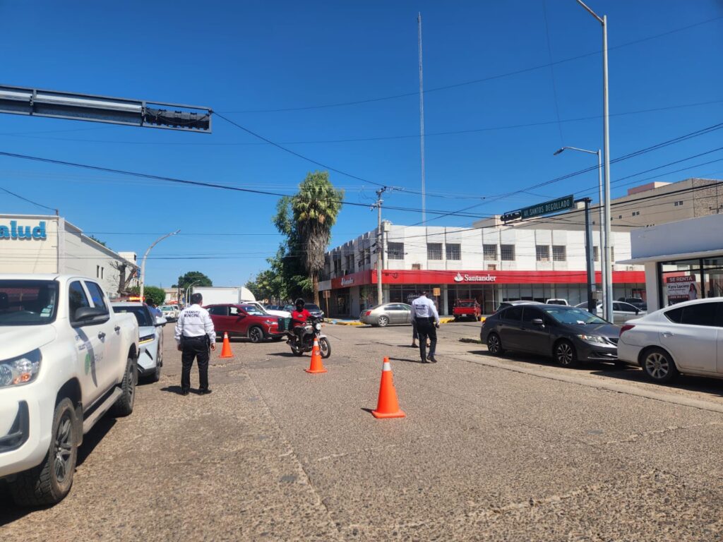 Los Mochis.- En atención a los reportes ciudadanos, el alcalde de Ahome, Antonio Menéndez de Llano Bermúdez, acudió este miércoles al cruce de la calle Álvaro Obregón y la avenida Santos Degollado, acompañado de personal de Obras Públicas y la Dirección de Tránsito Municipal, para evaluar el hundimiento detectado en la zona.