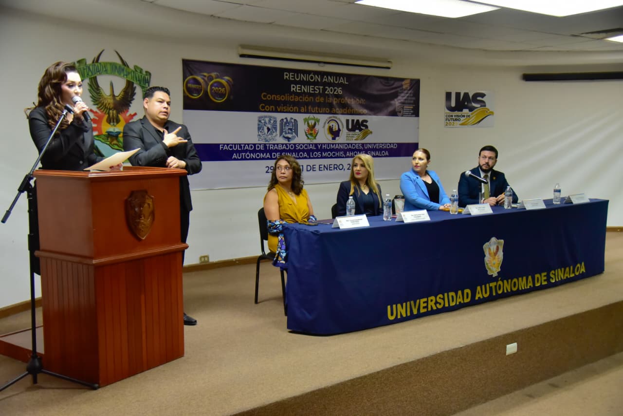 Los Mochis, Ahome, Sinaloa. A 29 de Enero de 2026.- Con un mensaje de bienvenida y reconocimiento al papel fundamental del Trabajo Social en la transformación de las comunidades, inició en Los Mochis la Reunión Anual RENIEST 2026, con sede en la Facultad de Trabajo Social y Humanidades de la Universidad Autónoma de Sinaloa (UAS), los días 29, 30 y 31 de enero, en el marco del 15 aniversario de la Red Nacional de Instituciones de Educación Superior en Trabajo Social.