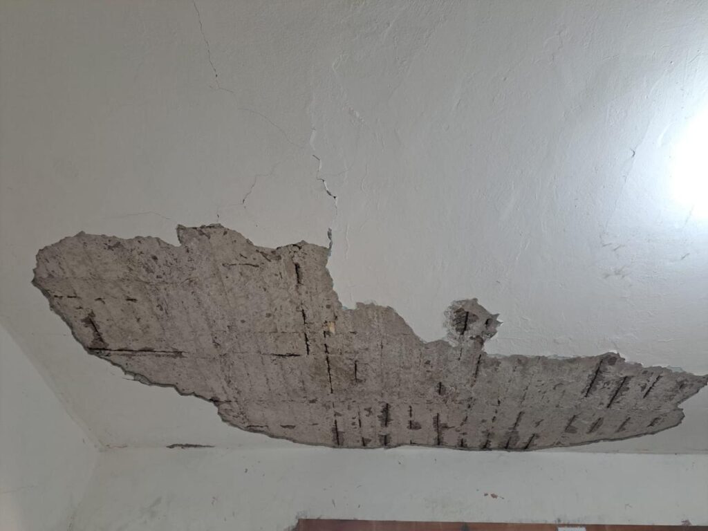 Escalante señaló que los techos de varios salones presentan grietas y enjarres desprendidos, y que la escuela, con más de 70 años de antigüedad, no ha recibido mantenimiento adecuado. Afortunadamente, ningún estudiante resultó afectado hasta el momento.