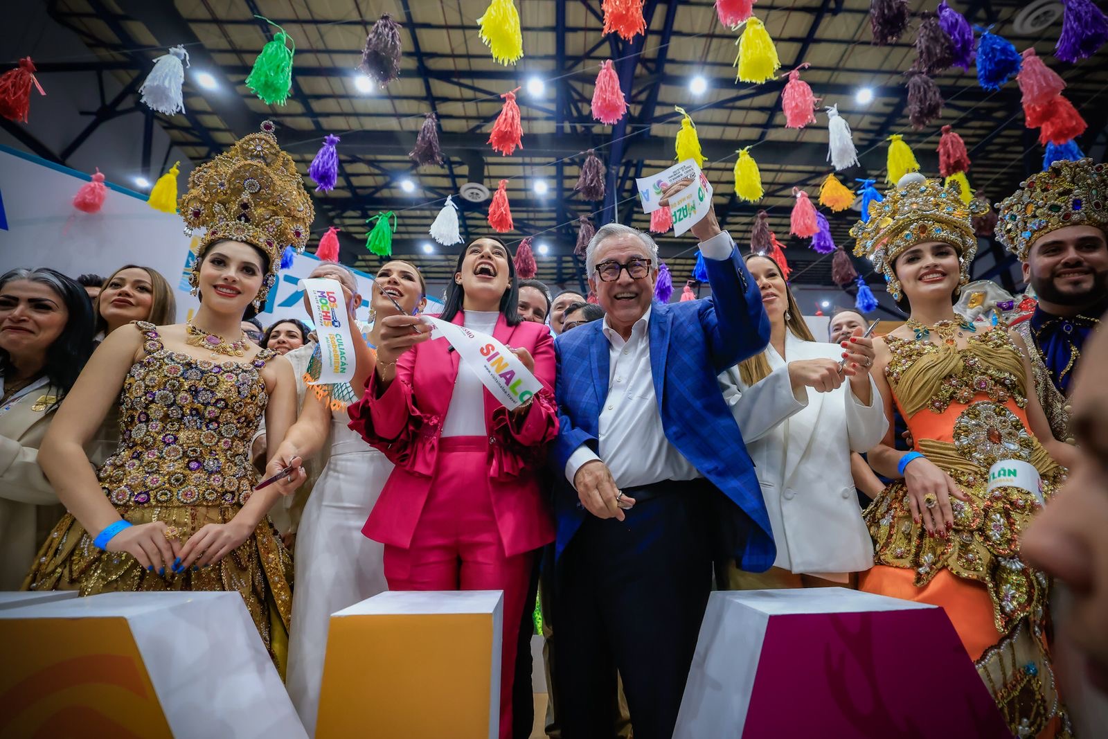 Tijuana, Baja California, a 28 de abril de 2025.- Con una notable representación de diversos municipios y los cuatro pueblos mágicos de la entidad, Sinaloa está presente en la inauguración del Tianguis Turístico 2025, con una comitiva encabezada por el Gobernador Rubén Rocha Moya, quién asistió acompañado de Mireya Sosa Osuna, Secretaria de Turismo y Ricardo Velarde Cárdenas, Secretario de Economía.