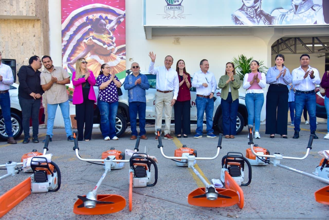“Me da mucho gusto estar aquí para entregar equipamiento que fortalecerá distintas áreas del Ayuntamiento y permitirá seguir dando resultados a las familias de Ahome. Hoy estamos entregando 7 desbrozadoras y 7 motosierras para las sindicaturas del municipio, herramientas que permitirán atender de manera más rápida y efectiva las labores de limpieza y mantenimiento de áreas verdes”, expresó.