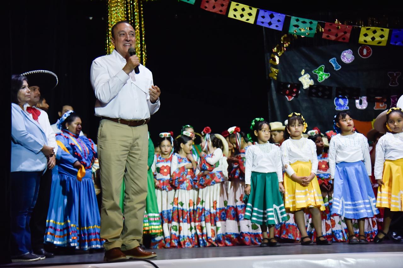 Los Mochis, Ahome, Sinaloa, a 24 de Junio del 2025.- Con entusiasmo y orgullo se llevó a cabo la muestra académica y cultural de cierre de ciclo escolar de la Escuela Primaria Margarita Maza de Juárez, de La Arrocera, en la que los estudiantes ofrecieron una presentación artística en el teatro de la Ciudad Universitaria UAS, con el proyecto titulado “México lindo y querido”, que destacó las tradiciones y el folclor del país, donde autoridades municipales y educativas reconocieron el esfuerzo de los alumnos, docentes y familias.