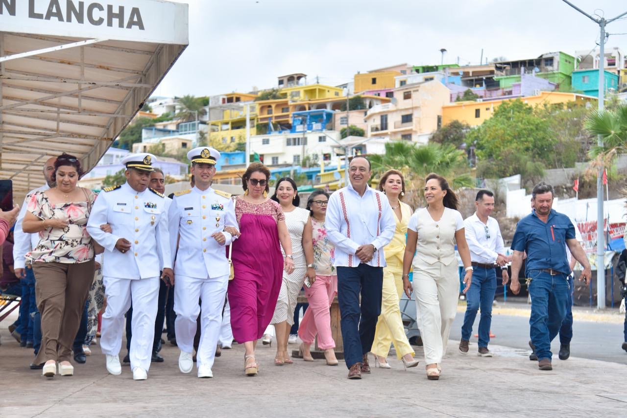 “Nos reunimos en el malecón frente a la bella bahía de Topolobampo, en este día que nos llena de orgullo por el trabajo que ustedes hacen por nuestra soberanía, el comercio, la seguridad y la protección civil del pueblo de México”, expresó el Presidente.