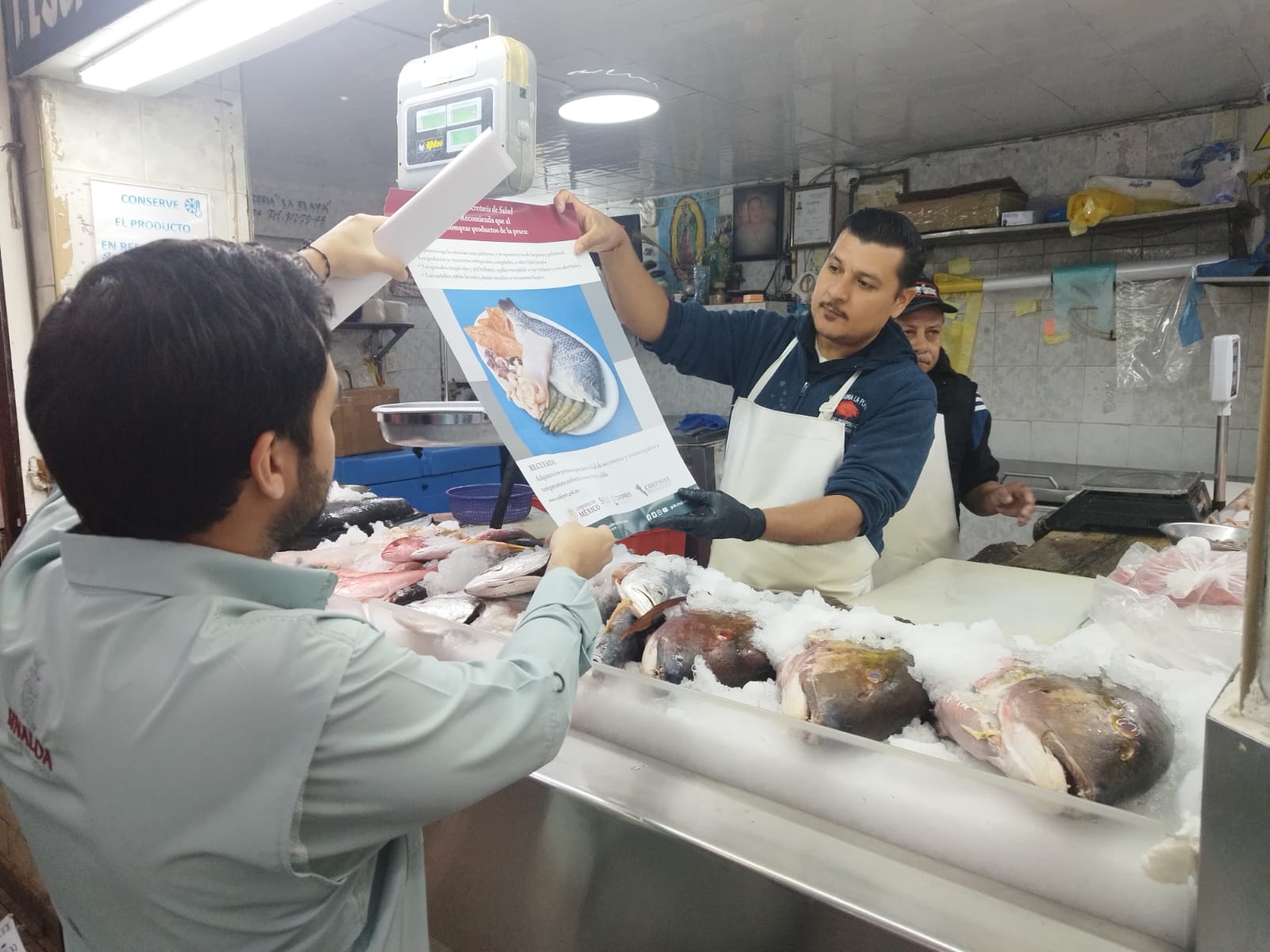 La COEPRISS está comprometida en prevenir cualquier riesgo sanitario por lo que recomienda a la personas que antes de adquirir cualquier producto de la pesca : que los pescados tengan sus ojos frescos, que las branquias estén de un color rojizo, así como que las escamas se encuentren adheridas al cuerpo, además de que cuente con firmeza la carne, que no emita mal olor y no tenga coloraciones verdosas o amarillas, ya que estos son indicativos visuales de que, los productos pudieran estar contaminados y no ser aptos para el consumo.