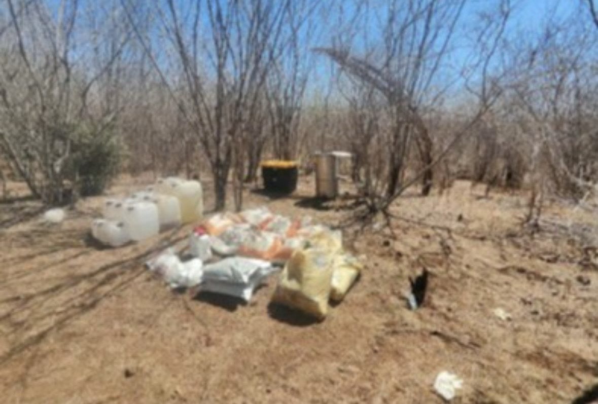 Durante trabajos de reconocimiento en los municipios de Culiacán y Cosalá, personal militar localizó asentamientos utilizados para la fabricación de drogas sintéticas, con diversas sustancias químicas, mezcladoras, reactores, bidones, tambos, barriles, costales, condensadores, centrifugadores y variadores de frecuencia.