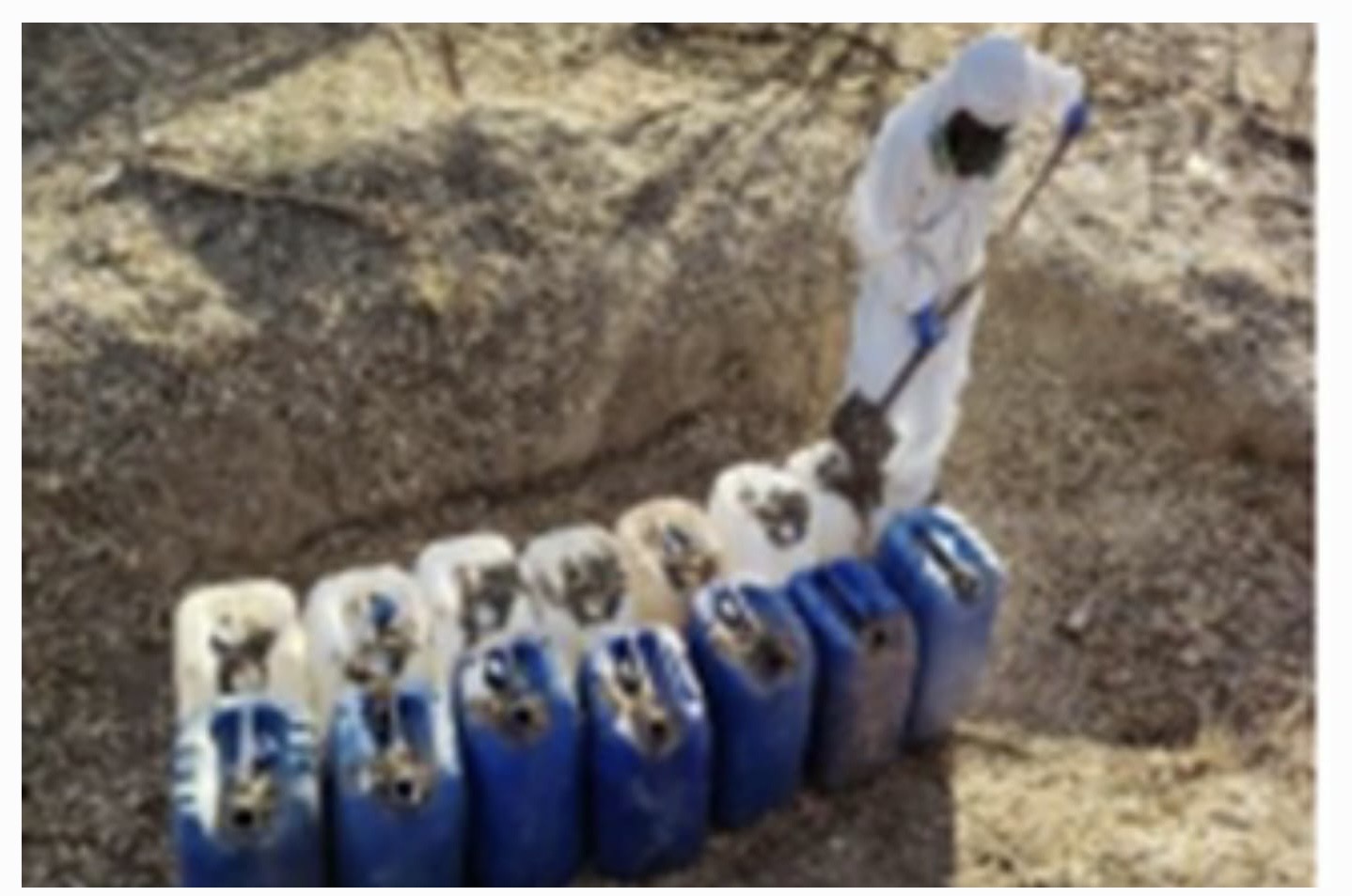 Durante acciones de reconocimiento terrestre en dichos municipios, el personal militar localizó asentamientos utilizados para la fabricación de drogas sintéticas, con diversas sustancias químicas, además de reactores, bidones, tambos, varios contenedores y utensilios.