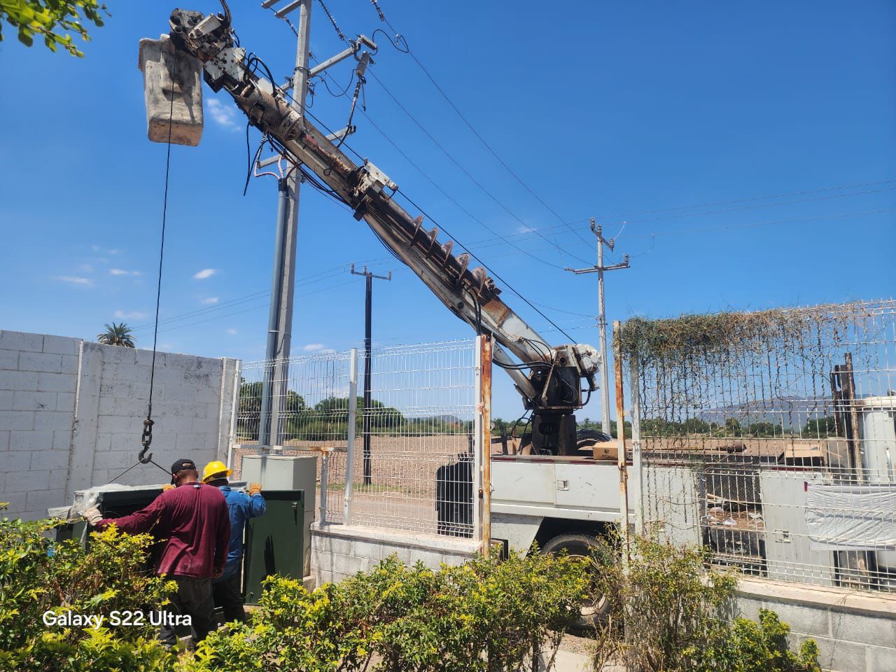 Gracias a la gestión del alcalde Gildardo Leyva Ortega, se realizó la instalación de un transformador de 150 KVA, con el objetivo de garantizar una operación eficiente y continua del sistema de potabilización de agua. Esta acción representa un paso importante para mejorar el abasto de agua potable en beneficio de los habitantes de estas localidades.