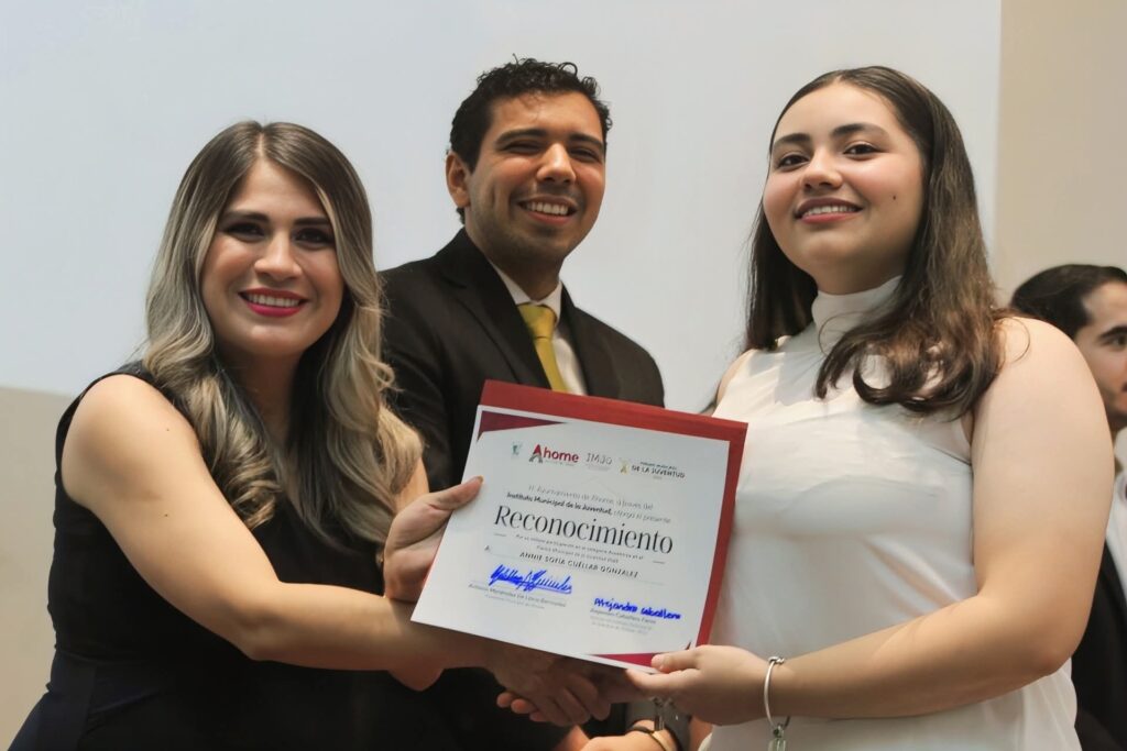 Los Mochis, sin a 3 de octubre de 2025.- El Ayuntamiento de Ahome, encabezado por el 𝗣𝗿𝗲𝘀𝗶𝗱𝗲𝗻𝘁𝗲 𝗔𝗻𝘁𝗼𝗻𝗶𝗼 𝗠𝗲𝗻é𝗻𝗱𝗲𝘇 𝗱𝗲 𝗟𝗹𝗮𝗻𝗼 𝗕𝗲𝗿𝗺ú𝗱𝗲𝘇, reconoce a los jóvenes ahomenses que participaron en el 𝗣𝗿𝗲𝗺𝗶𝗼 𝗠𝘂𝗻𝗶𝗰𝗶𝗽𝗮𝗹 𝗱𝗲 𝗹𝗮 𝗝𝘂𝘃𝗲𝗻𝘁𝘂𝗱 𝟮𝟬𝟮𝟱.