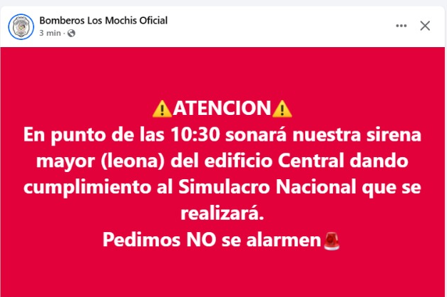 Las autoridades de bomberos pidieron a la población no alarmarse ante el sonido de la sirena, ya que se trata únicamente de un ejercicio programado y controlado.