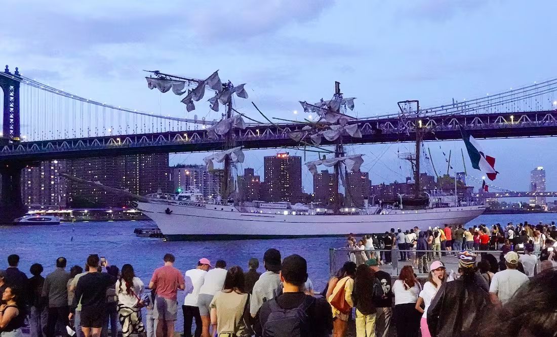 El incidente ocurrió la noche del sábado cuando el ‘Cuauhtémoc’, con 277 personas a bordo, se preparaba para partir hacia Islandia, tras una visita a Nueva York que comenzó el 13 de mayo como parte de su misión de diplomacia pública y formación naval.