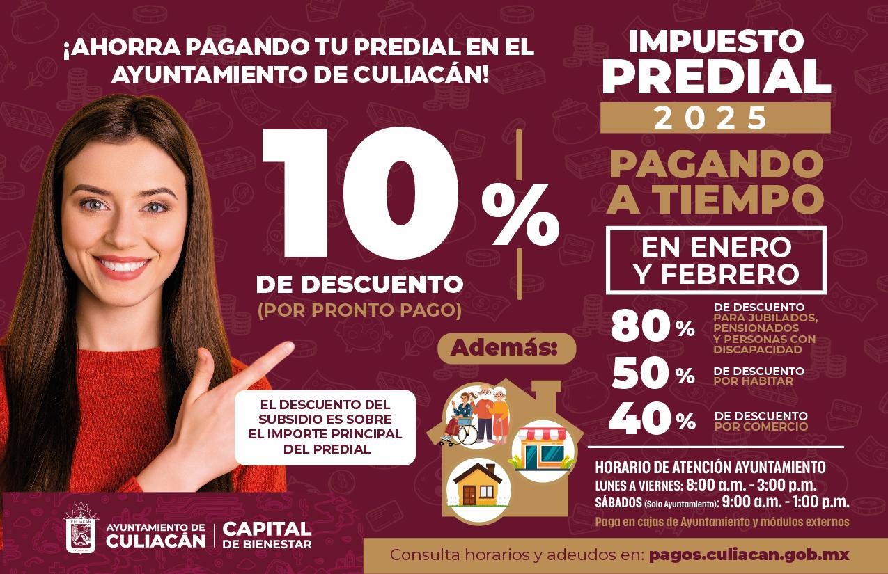 El Ayuntamiento invita a la ciudadanía a aprovechar los descuentos y cumplir con sus contribuciones de manera puntual, formando parte del desarrollo de la capital sinaloense.