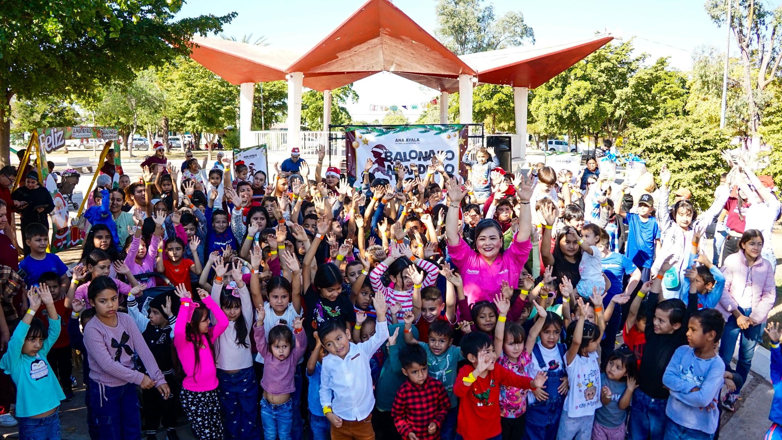 Ahome, Sinaloa.- La campaña Balonazo Navideño, impulsada por la Diputada Federal Ana Ayala, continúa recorriendo comunidades del municipio, llevando deporte, convivencia y momentos de alegría a niñas y niños durante esta temporada decembrina.