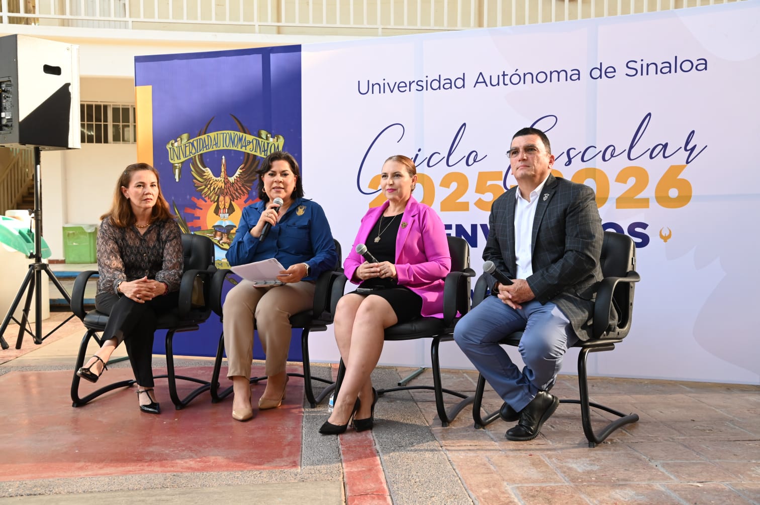En representación del Rector, doctor Jesús Madueña Molina, la Secretaria General, doctora Yuniba Brun Cabrera, dio la bienvenida a los más de 50 mil jóvenes de nuevo ingreso y a los que retomaron sus estudios y les expresó que la planta administrativa y docente trabajó y se preparó para recibirlos con los espacios en buenas condiciones y con las mejores herramientas para su aprendizaje.