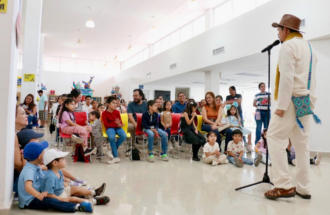 Ayuntamiento de Ahome a través del Instituto Municipal de Arte y Cultura y el Comité Ciudadano. La jornada inició a las 10:00 horas con la presentación del cuentacuentos Pepe Veloz, quien ofreció “Puros cuentos chinos”, un espectáculo lleno de humor y creatividad que mantuvo la atención de niñas y niños desde el primer momento.