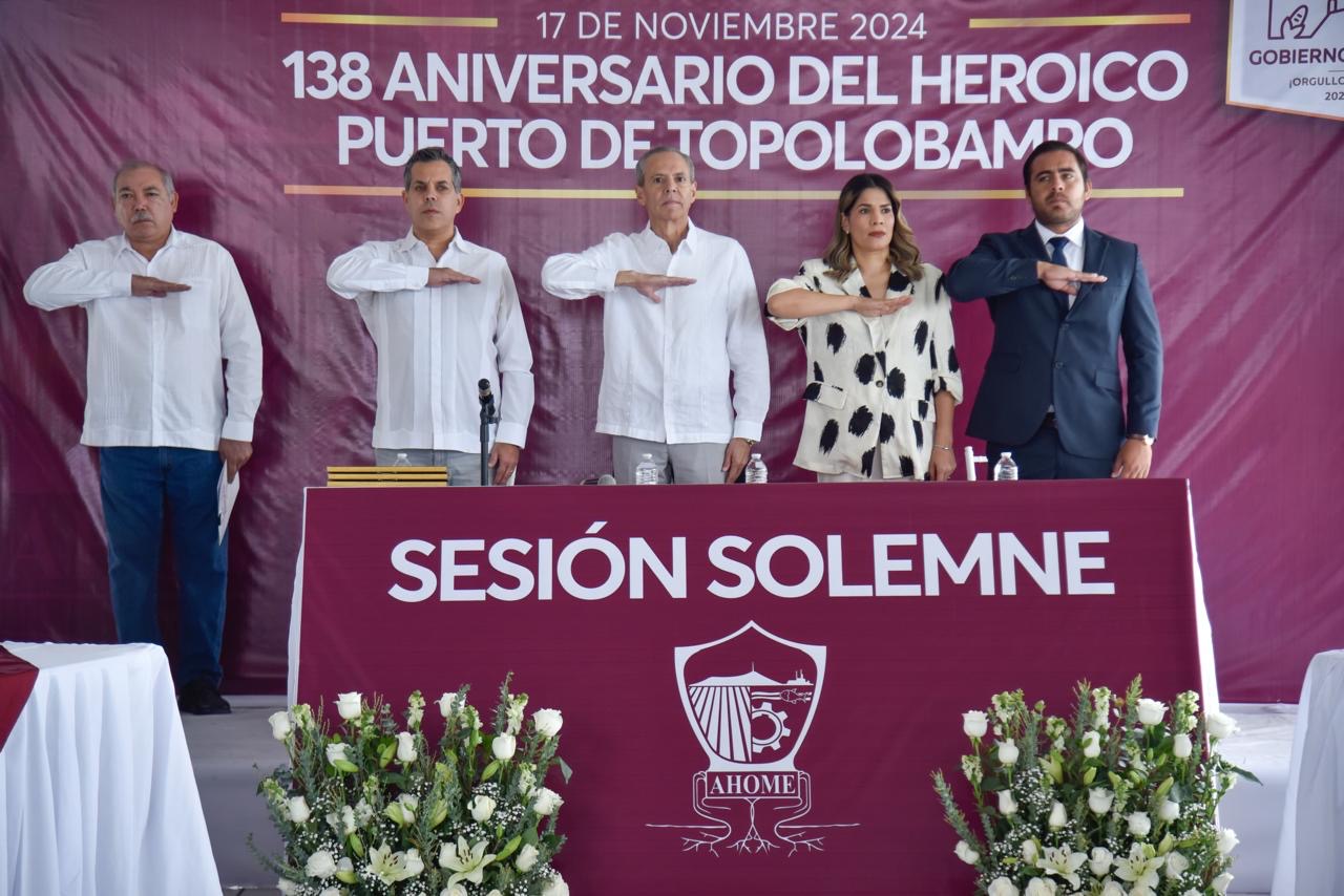 Por parte de la comunidad, participó el ciudadano Síndico Municipal, Joel Ulises Pinzón, como orador oficial, e hizo una reseña sobre el devenir histórico de Topolobampo que se fundó en 1886 por colonos extranjeros comandados por Albert Kimsey Owen.