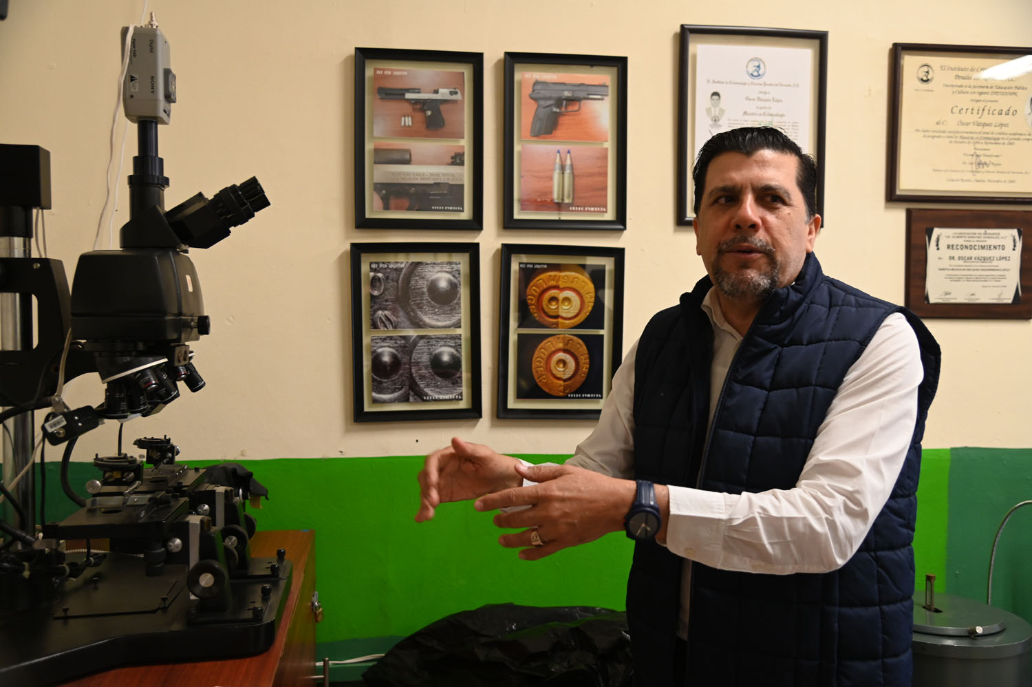 Robles Armenta señaló que hay planes que ya se platicaron con el Rector para ver la posibilidad de incrementar el equipamiento y la infraestructura para fortalecer la capacidad de los jóvenes pues actualmente se cuenta con un Laboratorio de Criminalística Forense, Balística de campo, documentoscopía, y se requiere fortalecer este espacio.