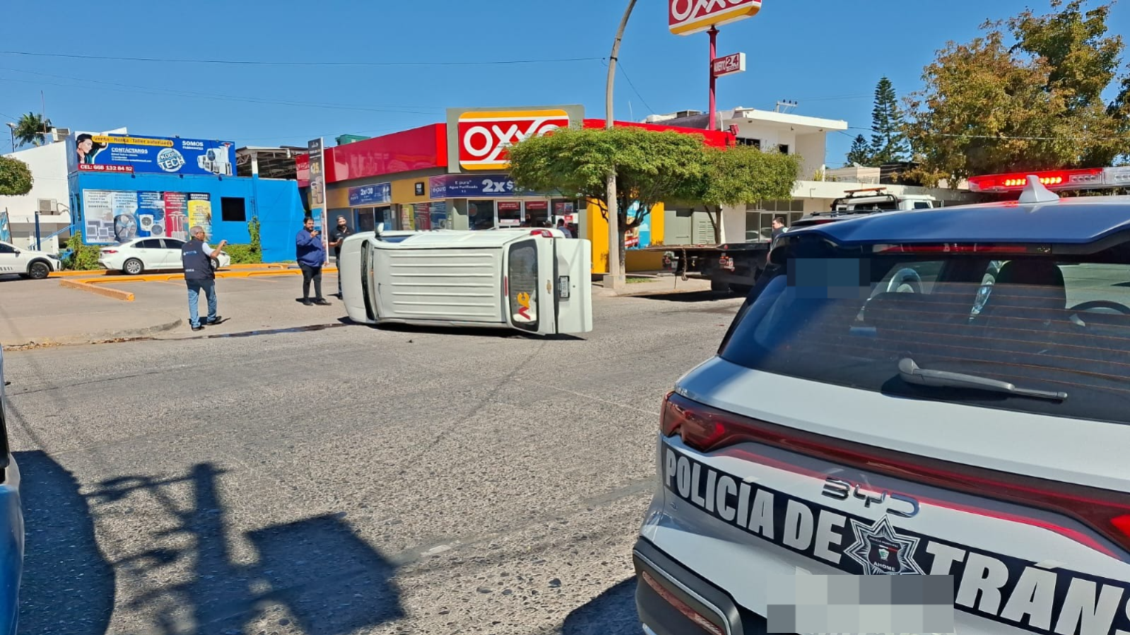 Los Mochis, Sinaloa. La mañana de este miércoles 11 de marzo de 2026 se registró una aparatosa volcadura en calles del sector Centro de la ciudad de Los Mochis, hecho en el que afortunadamente los participantes solo obtuvieron algunos golpes que no fueron de consideración, pero los daños fueron valuados en varios miles de pesos.