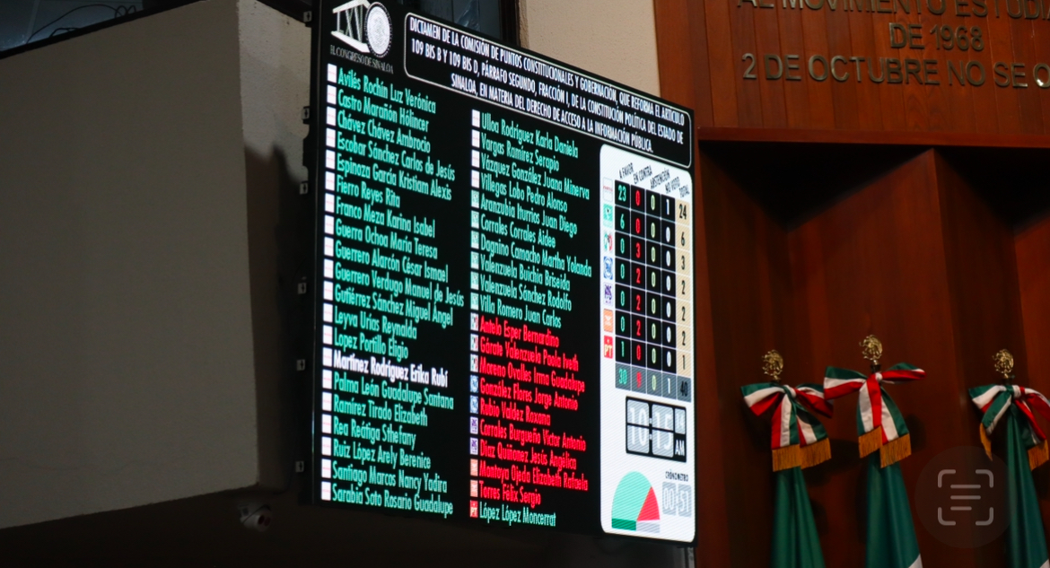 Culiacán, Sinaloa, a 18 de diciembre de 2025.– Con el voto en contra de diputadas y diputados de oposición, el Congreso del Estado de Sinaloa aprobó por mayoría una reforma a la Constitución local que contempla la desaparición de la Comisión Estatal para el Acceso a la Información Pública, órgano autónomo encargado de garantizar el derecho de acceso a la información y la protección de datos personales.