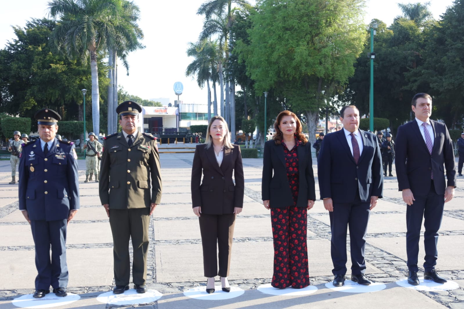 Culiacán, Sinaloa, a 14 de febrero de 2025.- En Conmemoración del 194 Aniversario Luctuoso del General Vicente Guerrero y del 146 Aniversario Luctuoso de Doña Agustina Ramírez, y con la representación del Gobernador Rubén Rocha Moya, la Secretaria de Educación Pública y Cultura, Gloria Himelda Félix Niebla, encabezó el izamiento de Bandera a media asta con honores de ordenanza, junto a autoridades civiles y militares, además de la entonación del Himno Nacional Mexicano.