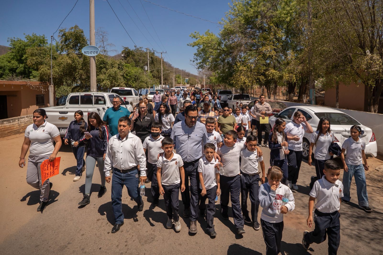 En este marco, el alcalde Juan de Dios Gámez encabezó la entrega de dos nuevas calles en la comunidad de La Guamuchilera, sindicatura de Las Tapias, (las calles 254 y 255) donde se destinaron 9 millones de pesos para la pavimentación en concreto hidráulico, beneficiando directamente a las familias de la zona.