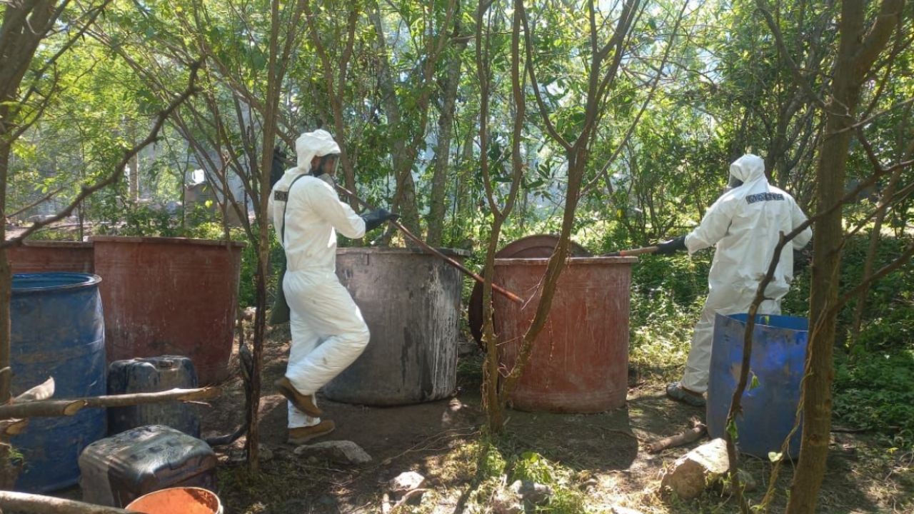 Durango (Localidad de Carricitos): Durante un recorrido terrestre, elementos navales detectaron un centro de producción a gran escala. En el sitio se aseguraron 1,150 litros y 695 kilos de precursores químicos. El complejo contaba con amplias áreas operativas que fueron inhabilitadas por completo.