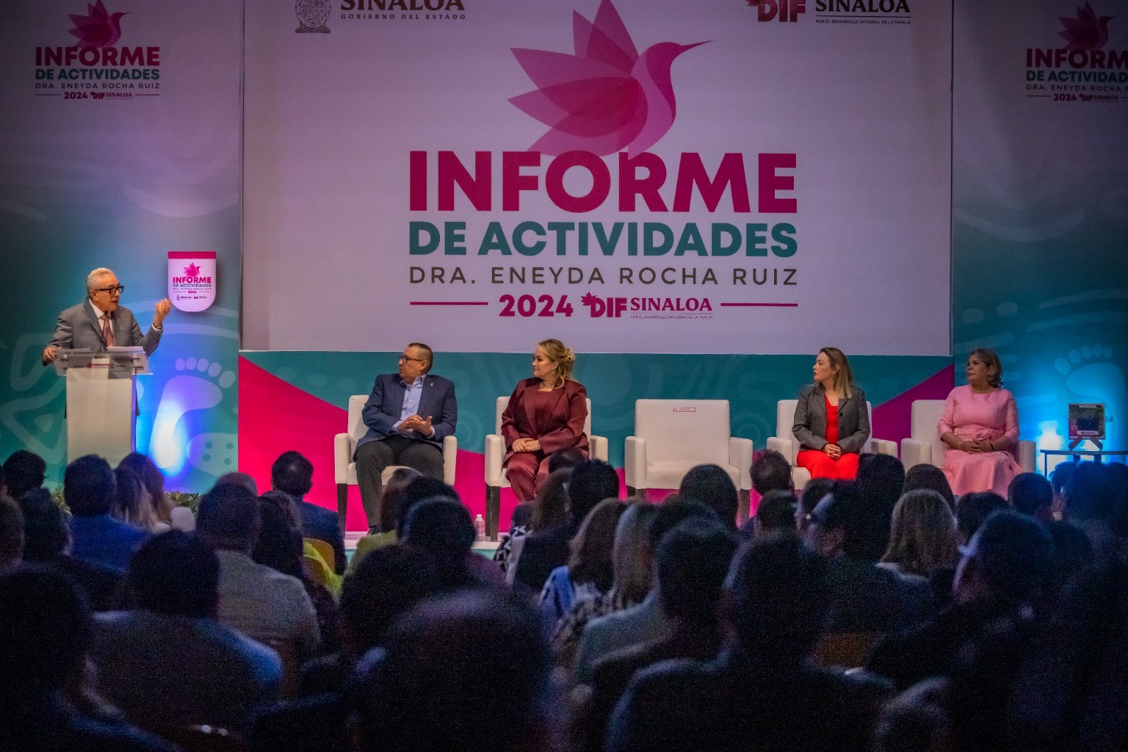 En su mensaje, la presidenta del Sistema DIF Sinaloa, Eneyda Rocha Ruiz, señaló que todas acciones realizadas y que dio cuenta en su Informe de Labores 2024 fueron para atender la encomienda del gobernador Rubén Rocha Moya, “a quien le agradezco su presencia y sobre todo la confianza en nosotras y nosotros para dedicarnos a la construcción de un Sinaloa inclusivo, más humanista, más justo y más solidario”.