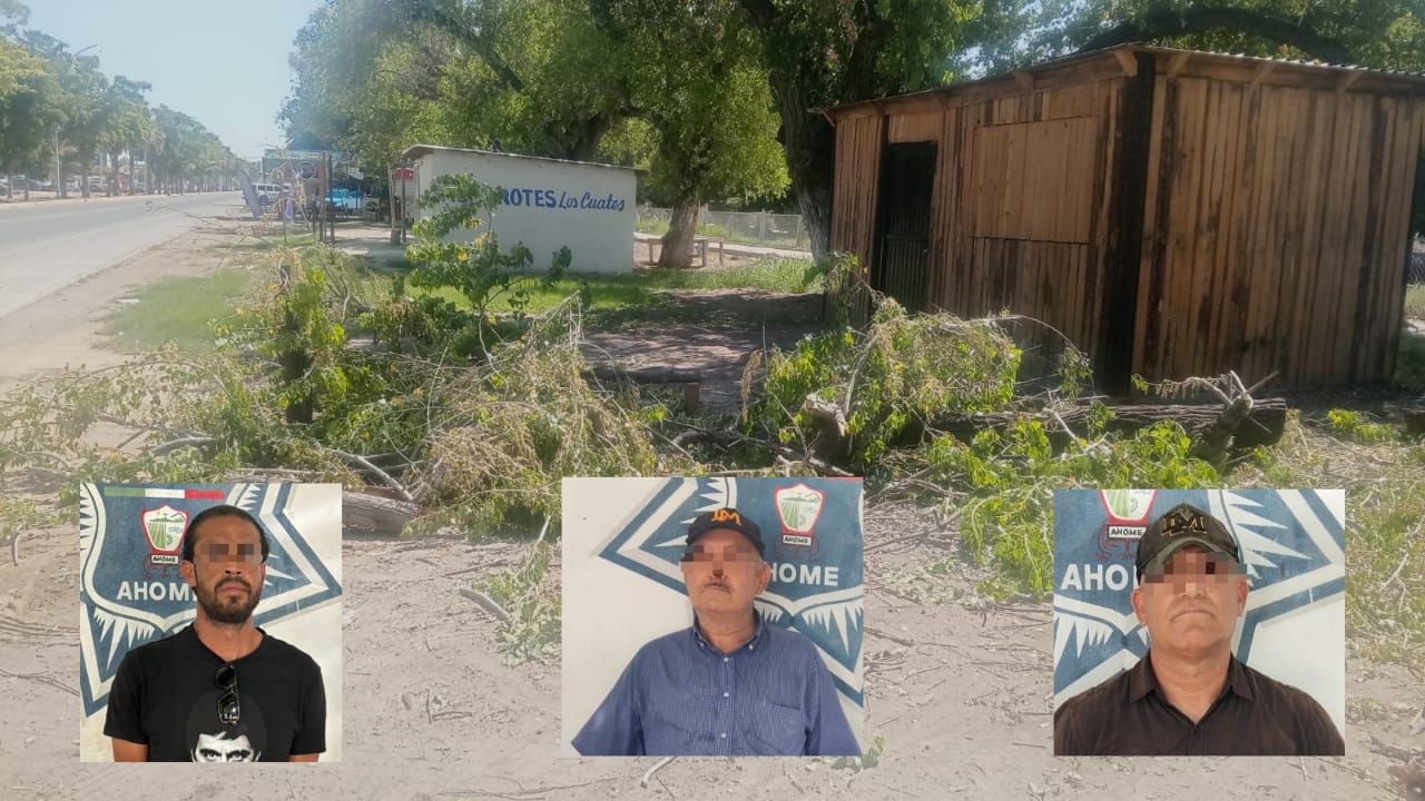 Los Mochis, Sin.– Tres personas fueron detenidas por elementos de la Policía Municipal de Ahome luego de presuntamente cortar y quemar un frondoso árbol sobre el bulevar Macario Gaxiola, lo cual constituye un delito ambiental.