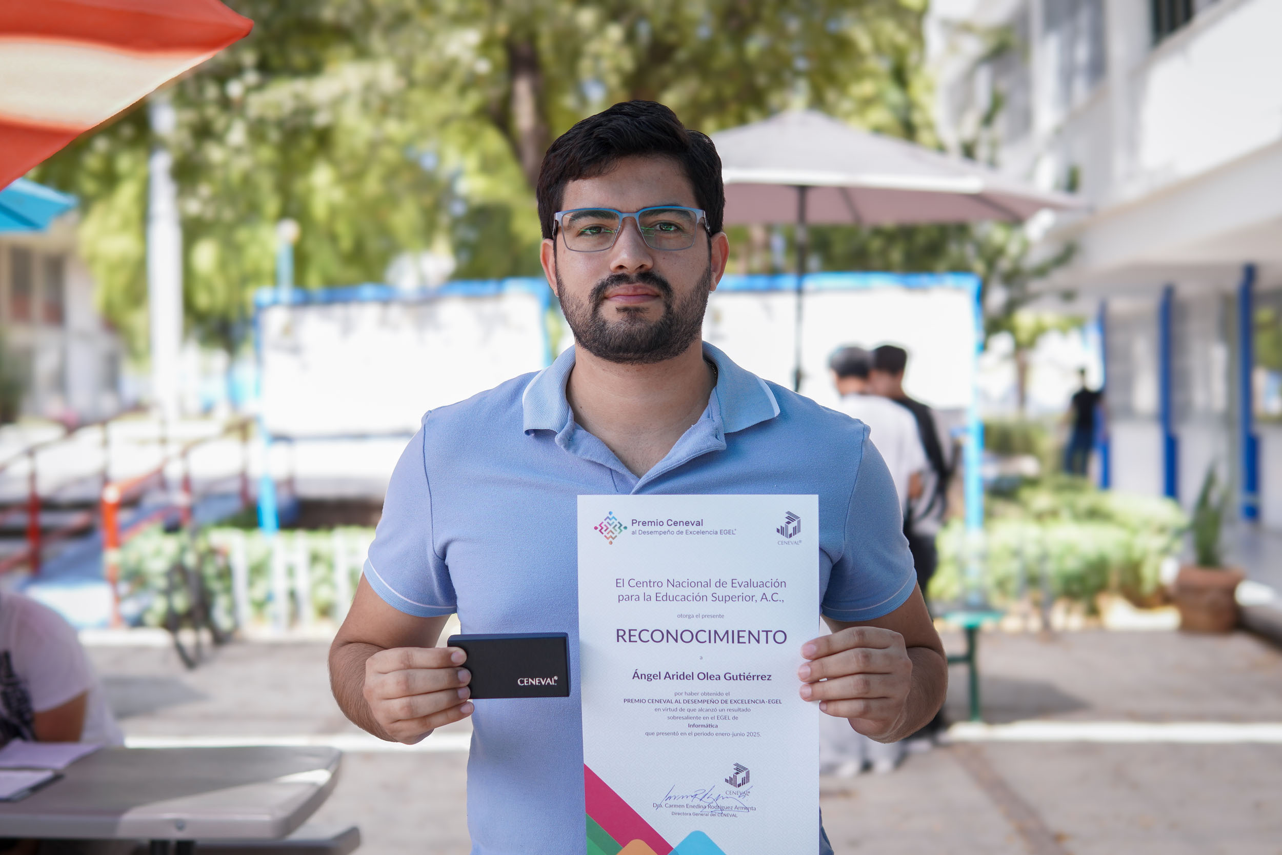 Ángel Aridel Olea Gutiérrez, egresado de la Facultad de Informática Culiacán (FIC) de la Universidad Autónoma de Sinaloa (UAS), fue reconocido a nivel nacional tras obtener un resultado sobresaliente en el Examen General de Egreso de Licenciatura (EGEL), evaluación aplicada por el Centro Nacional de Evaluación para la Educación Superior (CENEVAL). El joven señaló que, si bien presentó esta prueba como una opción de titulación, no esperaba alcanzar un desempeño tan destacado en el país.