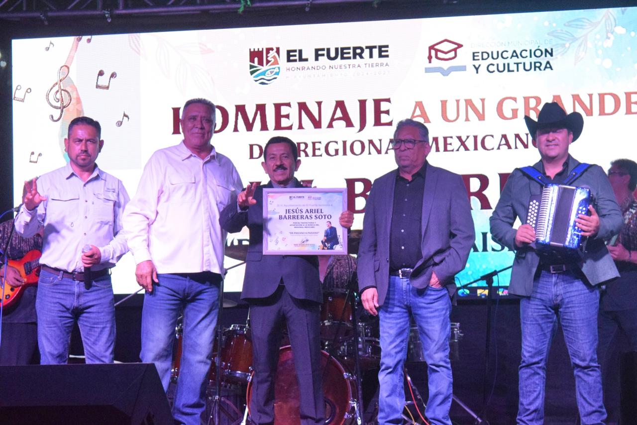 El alcalde Gildardo Leyva Ortega reconoció la importancia de honrar a los talentos originarios del municipio, resaltando que Ariel Barreras es un motivo de orgullo para El Fuerte y un ejemplo para las nuevas generaciones de artistas.