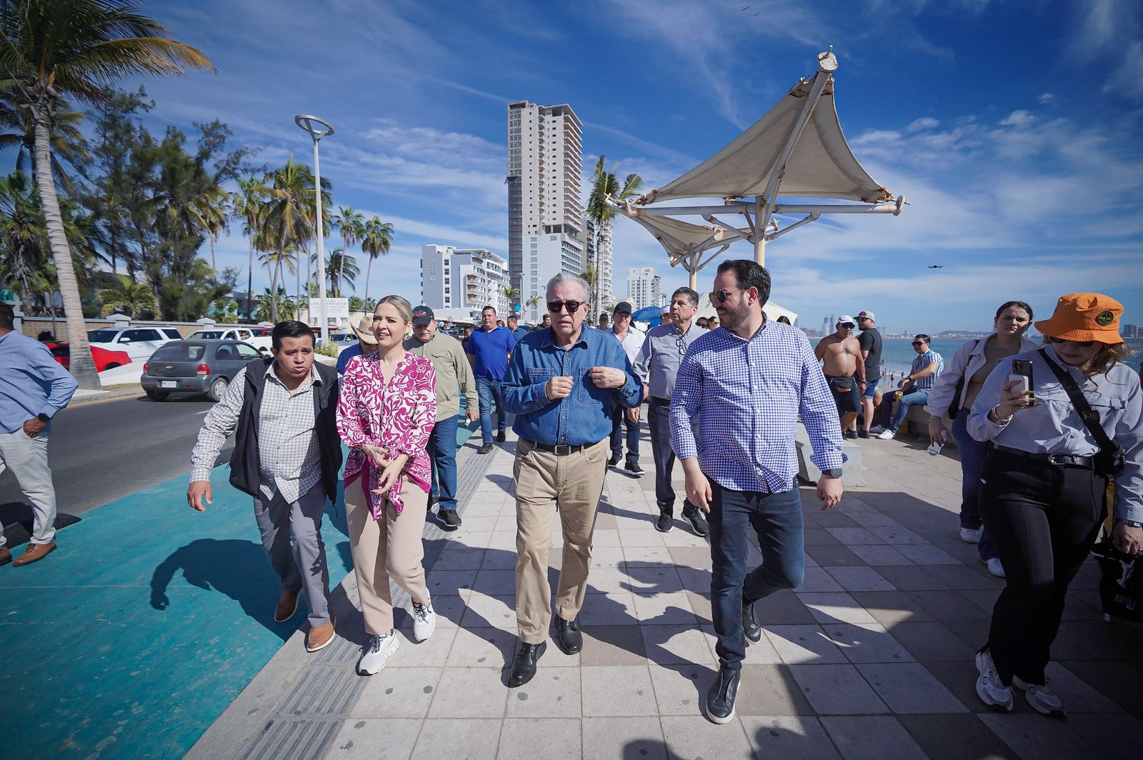 Mazatlán, Sinaloa; 01 de marzo de 2025.- En su visita este sábado al puerto de Mazatlán, el gobernador Rubén Rocha Moya, acompañado de la presidenta Estrella Palacios Domínguez, del secretario General de Gobierno Feliciano Castro, acudió al parador fotográfico de las letras de Mazatlán ubicado en pleno Malecón, donde saludó a visitantes y turistas nacionales y extranjeros que han acudido al Carnaval Internacional de Mazatlán.