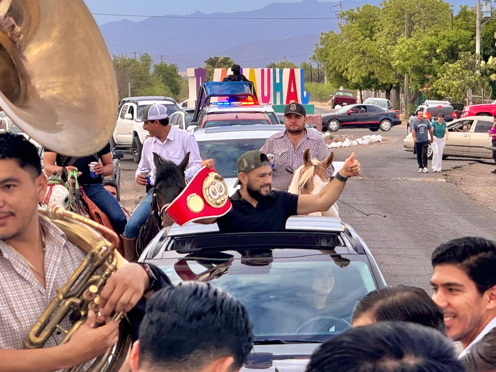El alcalde Gildardo Leyva Ortega se sumó a esta cálida bienvenida, acompañando al campeón a lo largo del trayecto, el cual estuvo animado por música en vivo y un ambiente festivo que reflejaba el orgullo de todos los presentes. .
