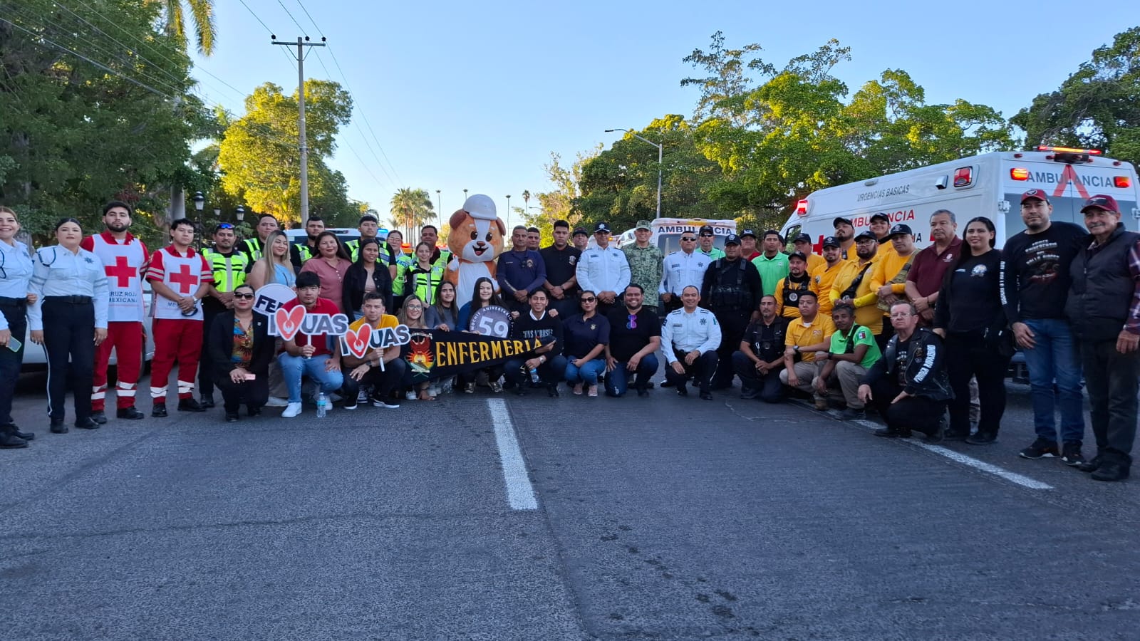 Elementos de emergencias realizan desfile de concientización en las principales calles de Los Mochis