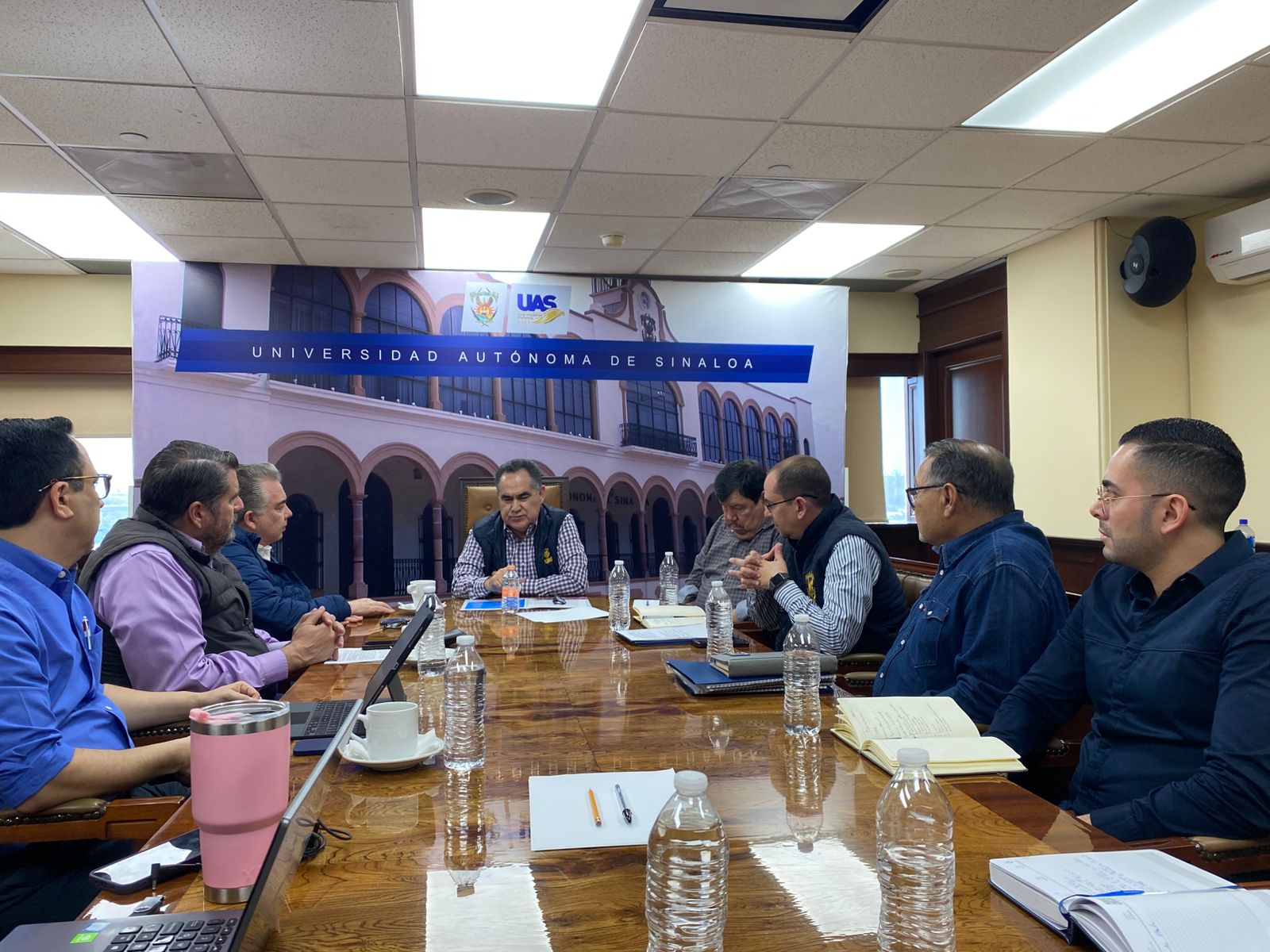 Mientras que los universitarios presentes fueron el Rector, el doctor Jesús Madueña Molina; el Secretario Académico, el doctor Jorge Milán Carrillo; el Director General de Investigación y Posgrado, el doctor Mario Nieves Soto; el Director General de Vinculación y Relaciones Internacionales, el doctor Jesús Enrique Sánchez Zazueta; el Vicerrector de la Zona Norte, el doctor Lauro César Parra Aceviz; el Coordinador de la Oficina de Transferencia de Tecnología, el maestro Jorge Balcázar Padilla y la representante de la DGIP Zona Norte, la doctora Lizbeth Orduño.