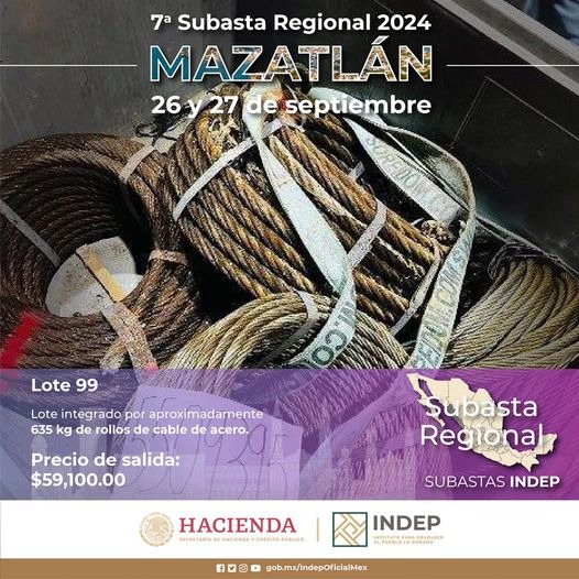 Culiacán, Sinaloa, 24 de septiembre del 2024.- El Instituto para Devolver al Pueblo lo Robado (INDEP) celebrará su séptima subasta regional de este año, los días jueves 26 y viernes 27 de septiembre, cuya sede será el Hotel Fiesta Inn, en Mazatlán, donde se ofertarán 500 lotes que comprenden diversos bienes, como vehículos automotrices, maquinaria de construcción y hasta una aeronave marca Beechcraft C 90.