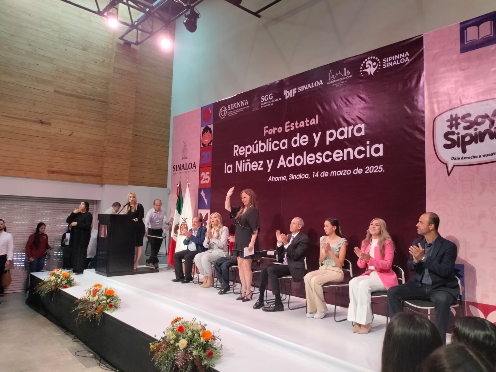 Los Mochis, Sin.- En el Centro de Innovación y Educación de la ciudad de Los Mochis se llevó a cabo el Foro Estatal “República de y para la Niñez y Adolescencia, en el cual estuvieron presentes autoridades como el alcalde de Ahome Gerardo Octavio Vargas Landeros; la titular del Sistema de Protección Integral de Niñas, Niños y Adolescentes (SIPINNA) Nacional, Lorena Villavicencio Ayala; y la titular de SIPINNA en Sinaloa, Connie Zazueta Castro.