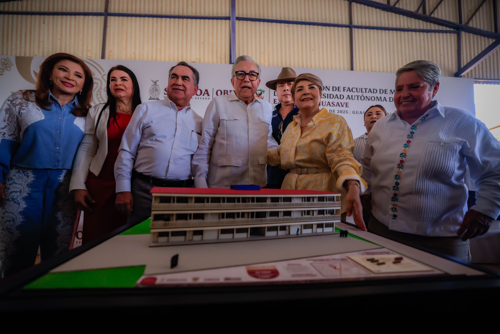A su vez, el director del ISIFE, Hugo Echave Meneses, dijo que esta obra vendrá a cristalizar el anhelo de los universitarios de Guasave de tener su propia Facultad de Medicina, la cual quedará concluida en 10 meses, pues los trabajos ya iniciaron, en beneficio de los 800 estudiantes de esta carrera, pues contará con 10 aulas, laboratorios, cuatro cubículos de consulta grupal, aula de cómputo, almacén, servicios sanitarios, todo con una inversión superior a los 52 millones de pesos.