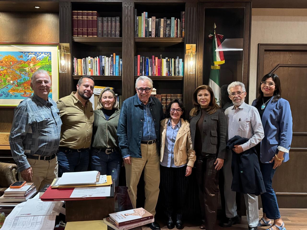 Culiacán, Sinaloa, a 9 de enero de 2026.- El gobernador Rubén Rocha Moya recibió en su despacho de Palacio de Gobierno, a la rectora de la Universidad Rosario Castellanos, Alma Herrera Márquez, y al secretario general de esta institución, Antonio Méndez Hernández, para anunciar que este año 2026 iniciará su oferta educativa en Sinaloa esta nueva alternativa de educación superior para las y los jóvenes sinaloenses.