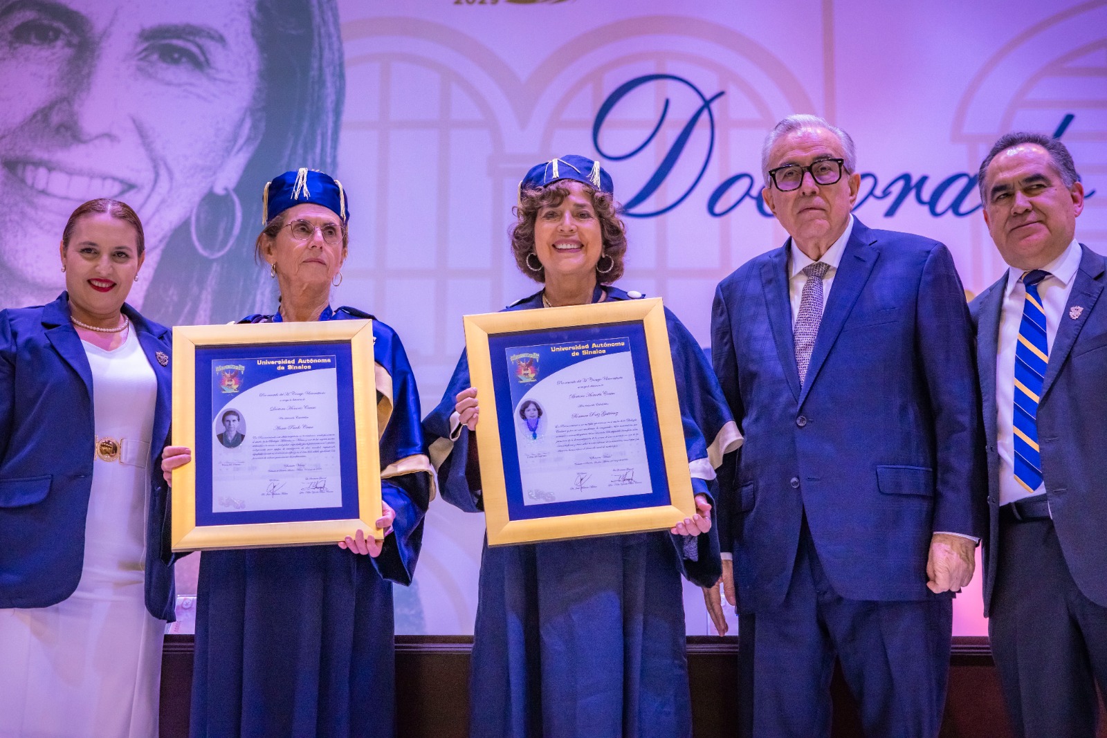 En una ceremonia solemne celebrada en el auditorio del Campus Rafael Buelna de la Máxima Casa de Estudios, junto al Honorable Consejo Universitario, el Gobernador Rocha, afirmó que las doctoras Annie Pardo y Rosaura Ruiz, han ensanchado el horizonte del saber y contribuido a la formación de científicos y científicas mexicanos y de otras latitudes, a lo largo de varias décadas.