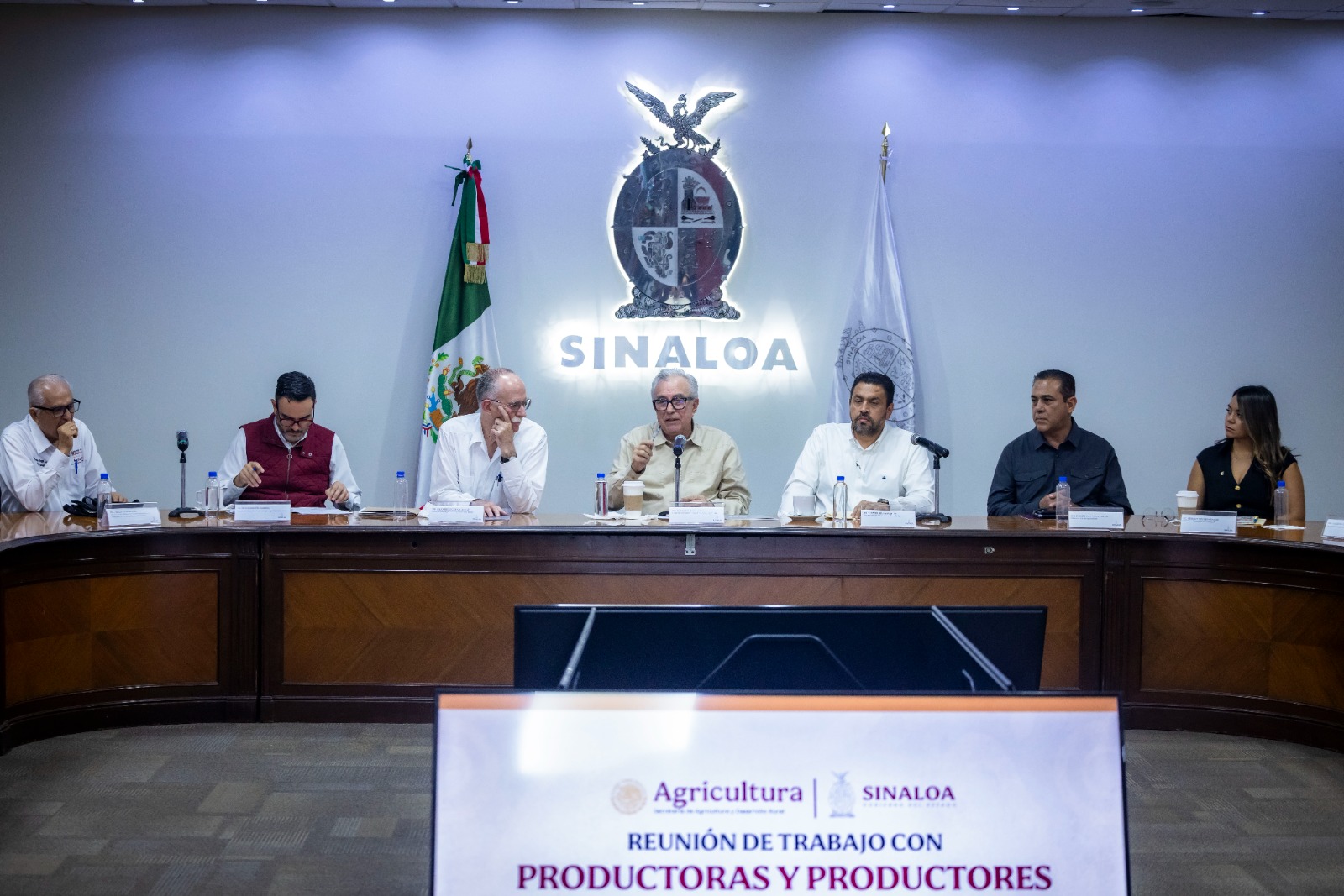 Culiacán, Sinaloa, a 3 de octubre de 2025.- En cumplimiento a la instrucción de la presidenta Claudia Sheinbaum Pardo, el secretario de Agricultura y Desarrollo Rural, Julio Berdegué Sacristán, se reunió en compañía del gobernador Rubén Rocha Moya con los dirigentes de los productores agrícolas de todo el estado, tanto del sector social como privado, para valorar desde ahora, antes de que inicie la siembra del maíz del próximo ciclo agrícola, la comercialización de la cosecha, así como todos los factores que inciden en el proceso de producción.