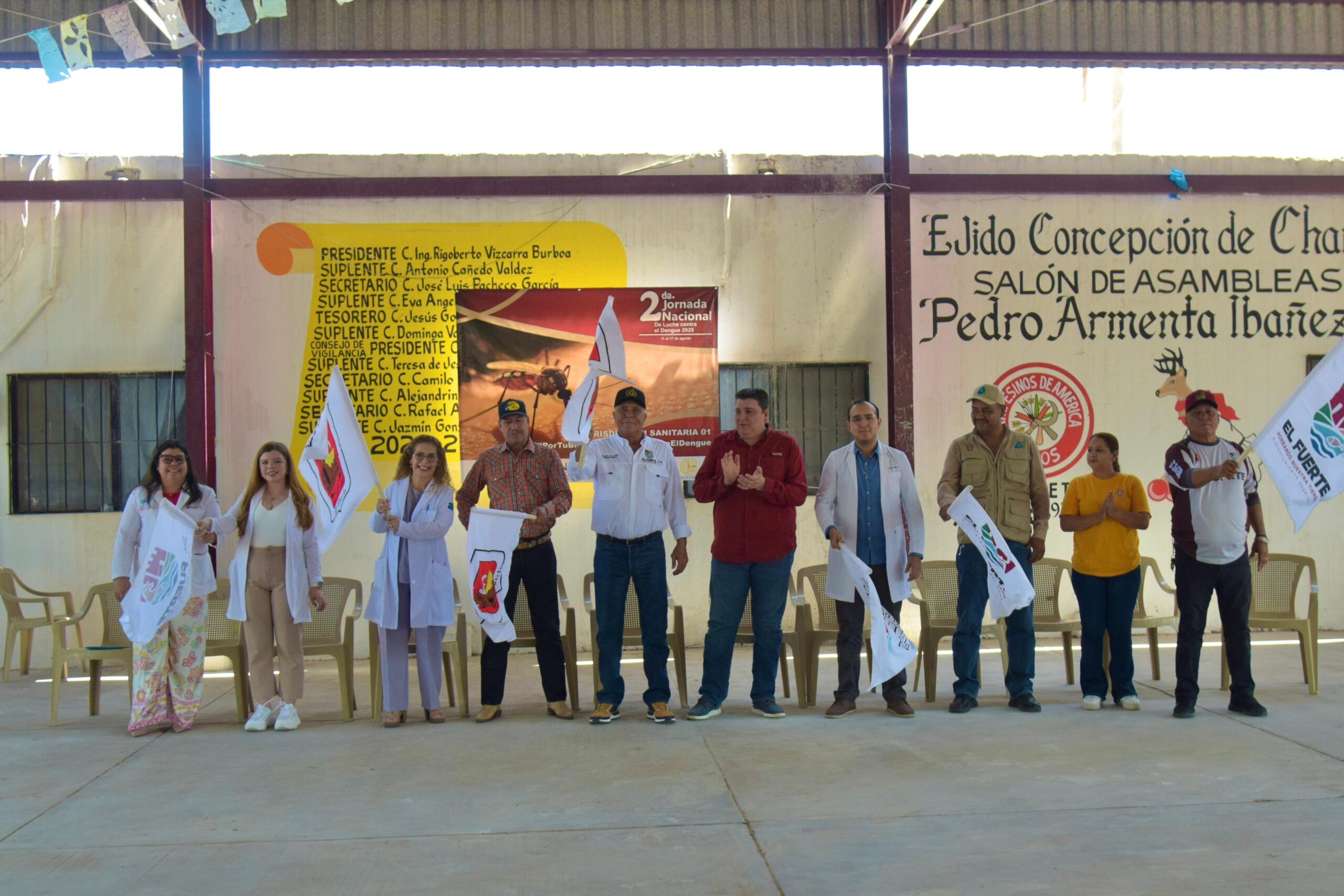 El Fuerte, Sinaloa, a 12 de agosto del 2025.- El Gobierno Municipal de El Fuerte dio el banderazo oficial a la 2ª Jornada Nacional de Lucha contra el Dengue en la sindicatura de Charay, evento que reunió a autoridades municipales, personal de salud, funcionarios y habitantes de la comunidad.