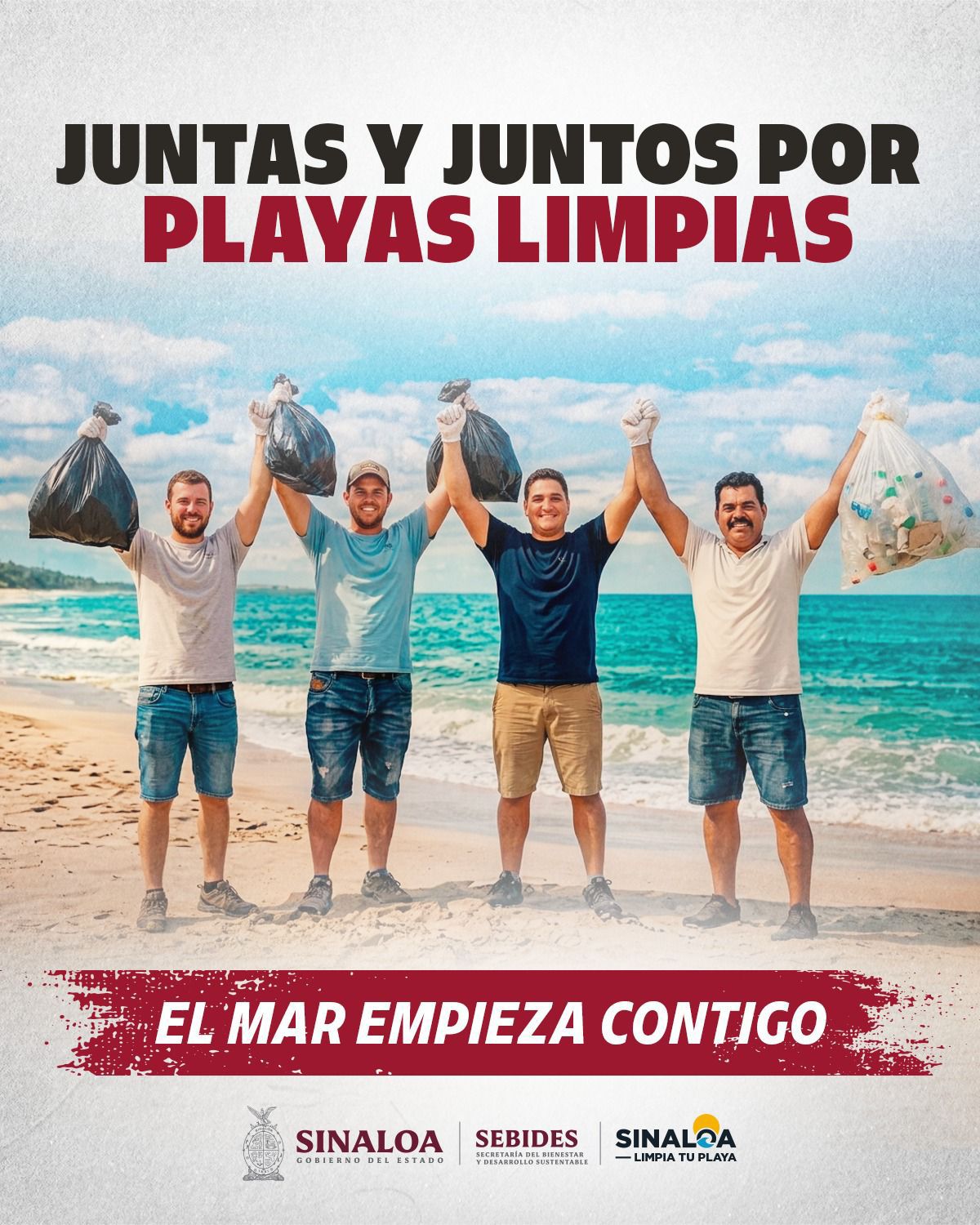 Estas acciones forman parte de la campaña “Sinaloa limpia tus playas”, que promueve la participación de todas y todos en el cuidado del entorno, bajo el mensaje de que el mar empieza contigo.