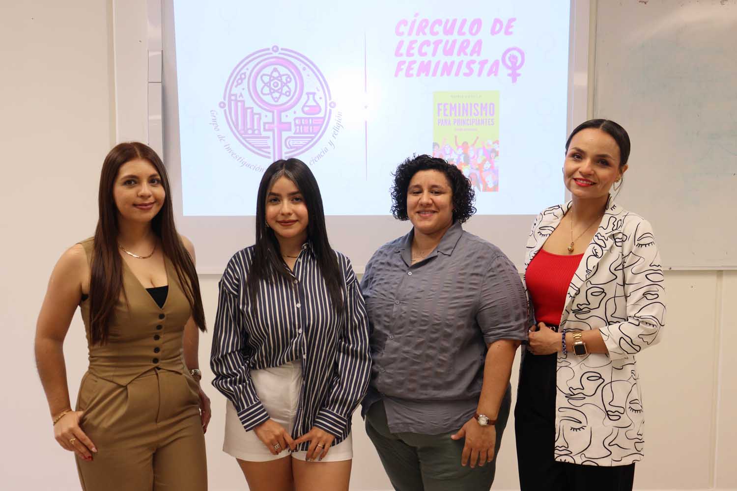 El grupo de investigación “Feminismo, Ciencia y Religión” conformado por las doctoras Rosa Alvarado Guevara, Ana Isabel Sánchez Osuna, Samantha Yadira Niebla Moreno y la maestra en ciencias Kathleen Airam Quezada Diaz de la Facultad de Ciencias de la Educación (FACE) de esta Máxima Casa de Estudios sinaloense, presentaron un “Círculo de Lectura Feminista” en las instalaciones de la Unidad de Estudios de Posgrado dirigido a mujeres estudiantes de licenciatura y de posgrado interesadas en debatir el feminismo y la construcción del conocimiento desde una perspectiva de género.