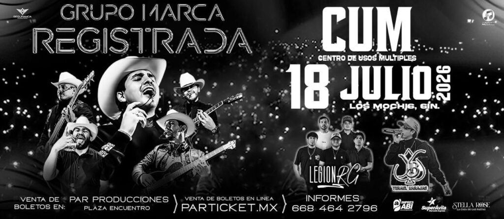 Los Mochis, Sin.— La espera terminó para los fanáticos de la música regional mexicana en el norte del estado. Se ha confirmado que el Grupo Marca Registrada se presentará en Los Mochis el próximo 18 de julio, trayendo consigo toda la energía de sus éxitos al escenario del Centro de Usos Múltiples (CUM).