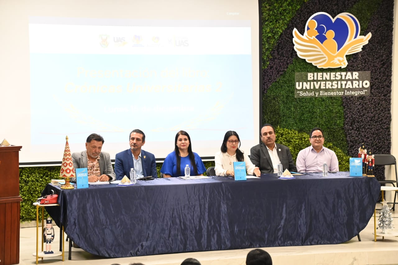 “Crónicas Universitarias 2” obra literaria publicada bajo el sello editorial de la Universidad Autónoma de Sinaloa (UAS) fue presentada ante la comunidad Rosalina por la Unidad de Bienestar Universitario (UBU) en coordinación con la Dirección de Prestaciones Sociales y la Dirección de Editorial UAS.