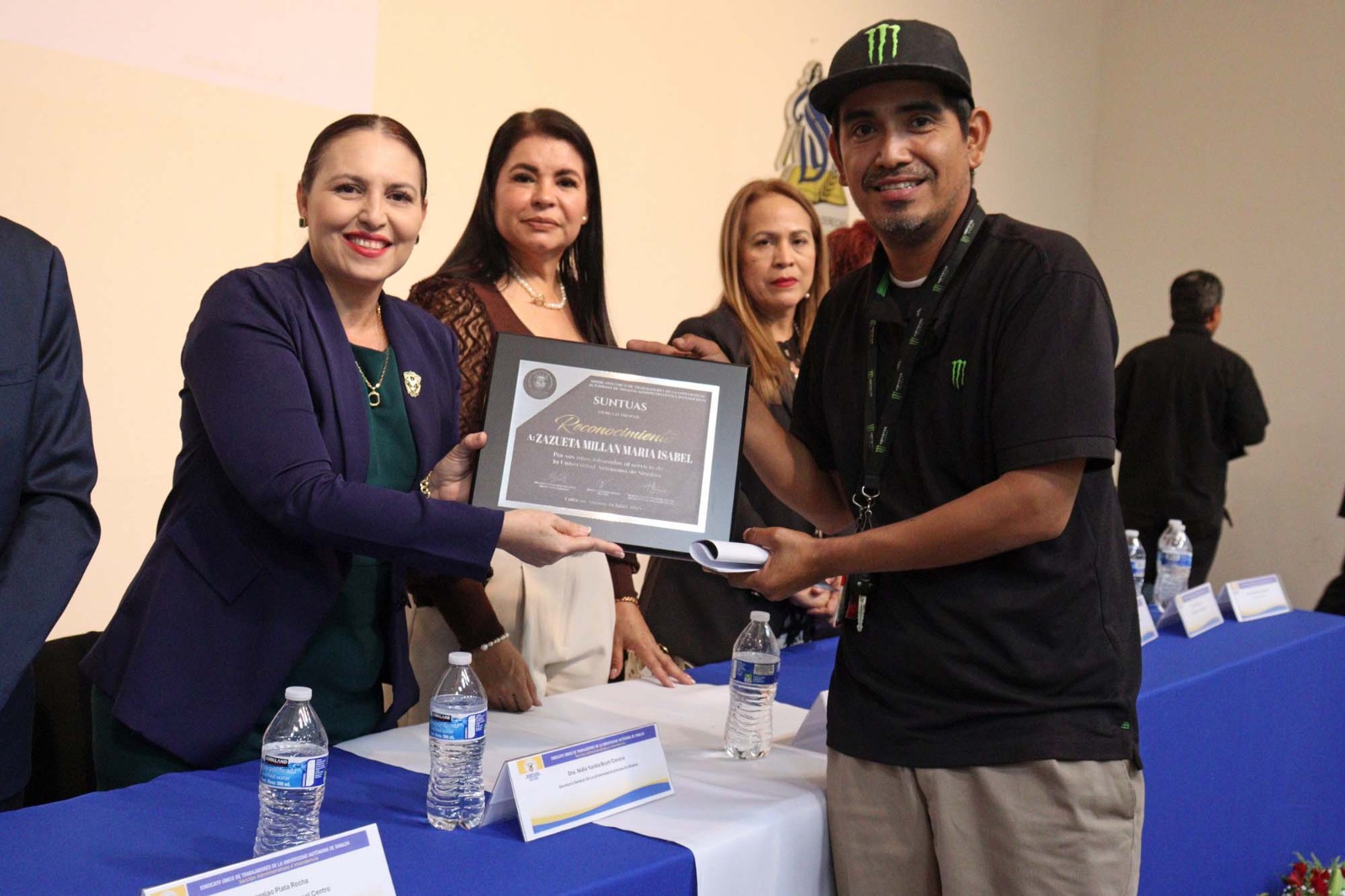 En la ceremonia, el licenciado Isfa Bernabé Leal Salazar, Secretario General Ejecutivo del SUNTUAS Administrativos e Intendencia, quien estuvo acompañado por autoridades universitarias como la doctora Nidia Yuniba Brun Corona, Secretaria General y la doctora Sofía Ángulo Olivas, directora de la Unidad de Bienestar Universitario (UBU), fue enfático en señalar que este acto es en plena observancia del Contrato Colectivo de Trabajo (CCT), agradeciendo así a la institución porque pese a los problemas económicos que se viven, a los trabajadores no se les falla.
