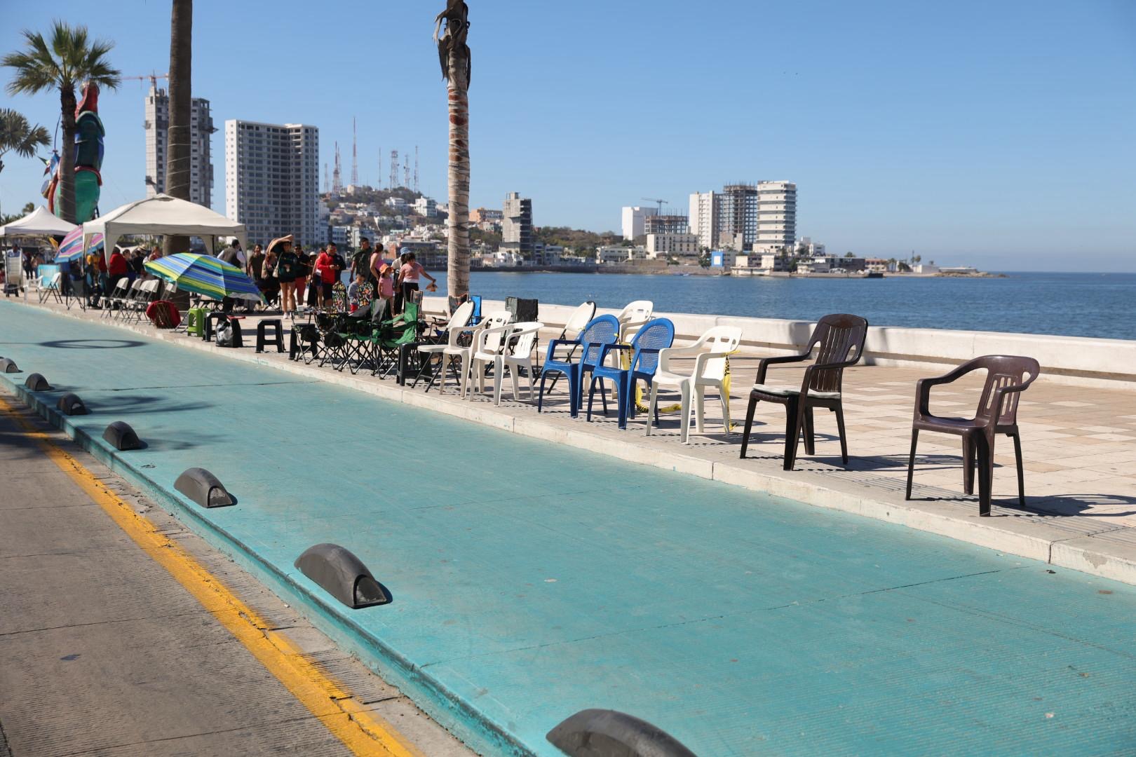 Hoy, como hace años, familias apartan lugares para disfrutar del tradicional desfile de Carnaval en Mazatlán