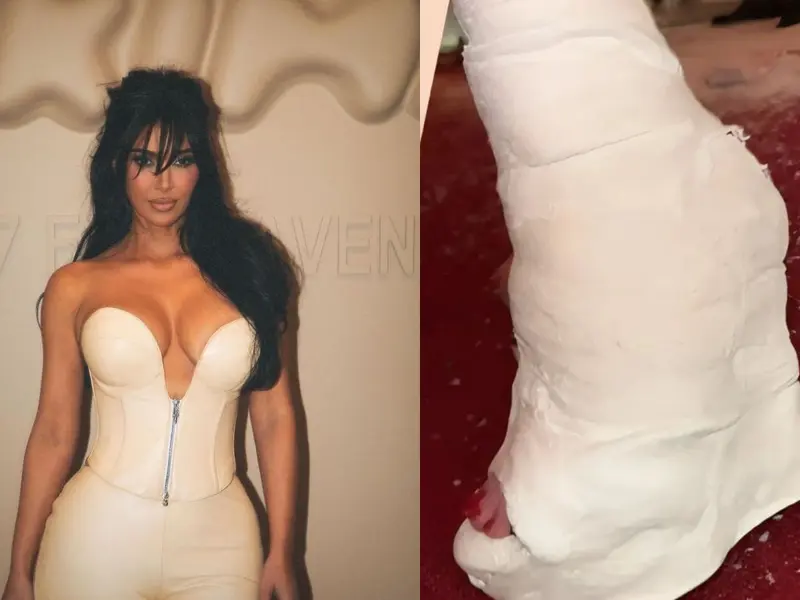 Kim demostró que incluso una lesión física puede convertirse en una declaración de estilo al mostrar su ingeniosa solución para su fractura en el pie, fue transformada en un yeso diseñado en forma de un zapato de cuña.