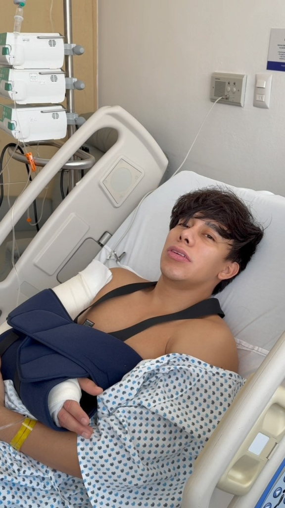 El incidente ocurrió durante una reunión familiar, en la que Sonrix decidió participar en un juego de “fuercitas” o vencidas. El resultado fue un aparatoso accidente que lo dejó con fracturas severas en el brazo derecho.